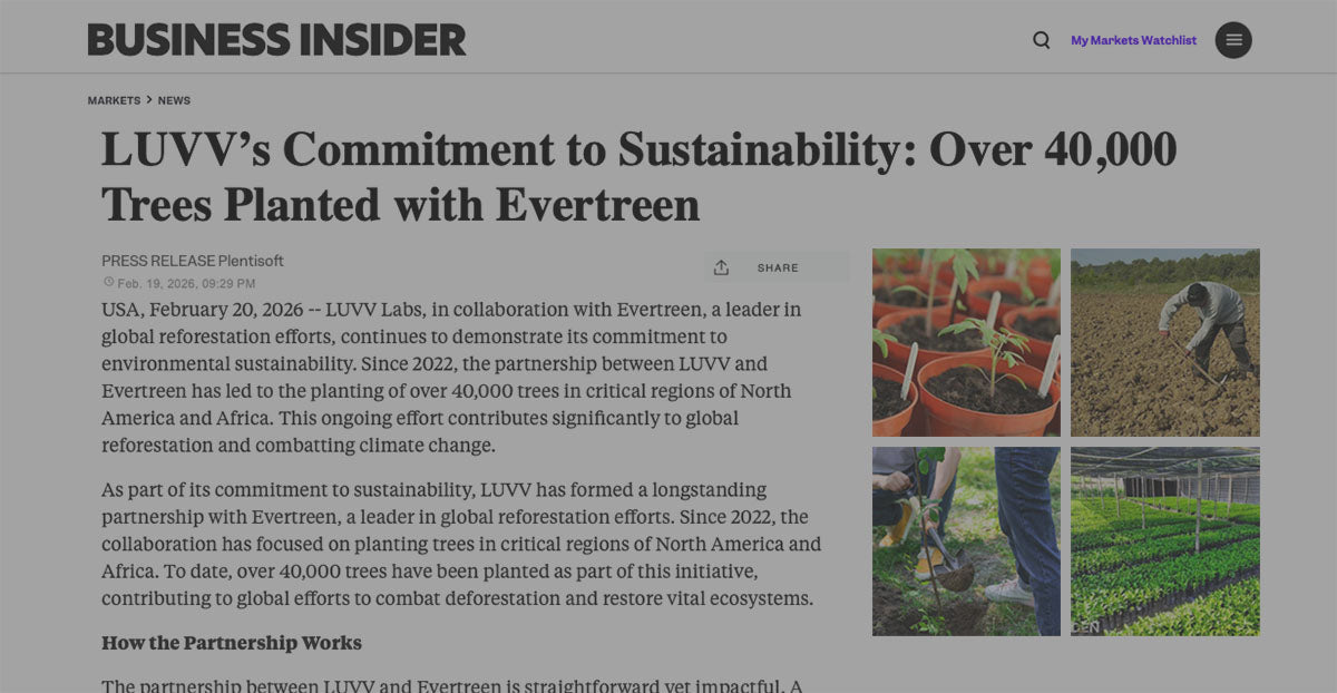 LUVV Labs has officially partnered with Evertreen to create new forests. Every order placed will contribute towards trees being planted all over the world. For 2026 we have a set a goal of planting 35,000 new tree seedlings. We will keep you updated and informed of our progress as we reach these goals.