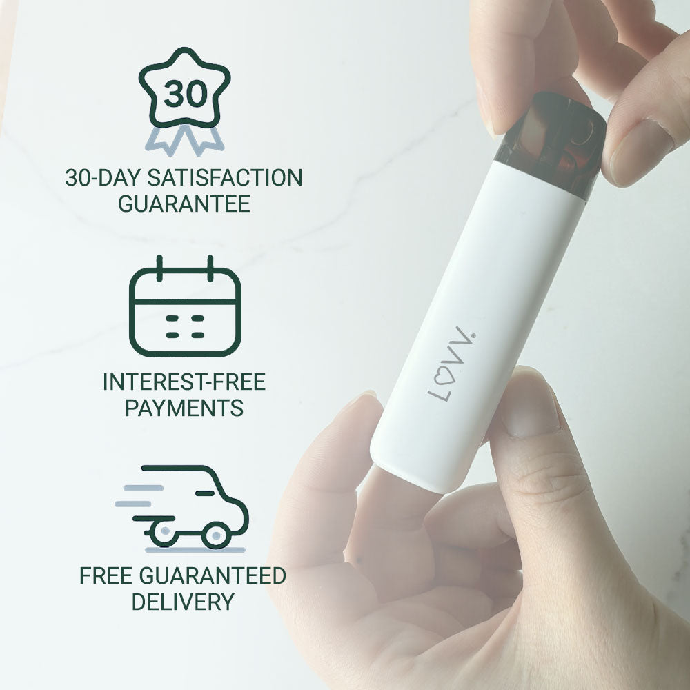 LUVV products contain no harmful ingredients and no fillers like vitamin E acetate, no diacetyl, no sugars, and no calories. Our vitamin-infused formulas are delivered through a water-soluble carrier base.