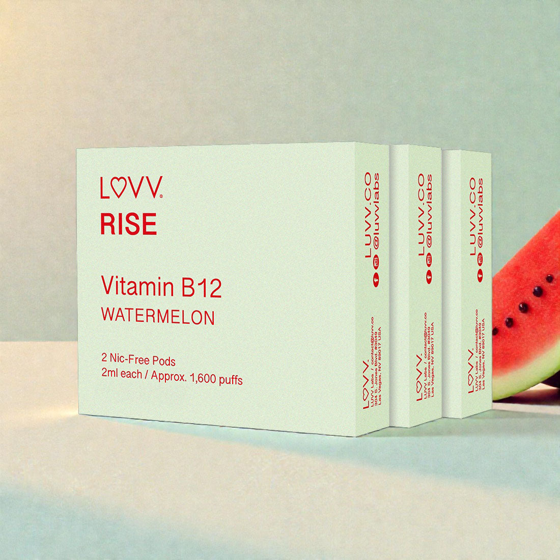 LUVV products contain no harmful ingredients and no fillers like vitamin E acetate, no diacetyl, no sugars, and no calories. Our vitamin-infused formulas are delivered through a water-soluble carrier base.